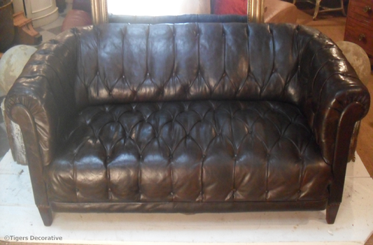 Early 20th Century Victorian Black Leather Chesterfield Sofa