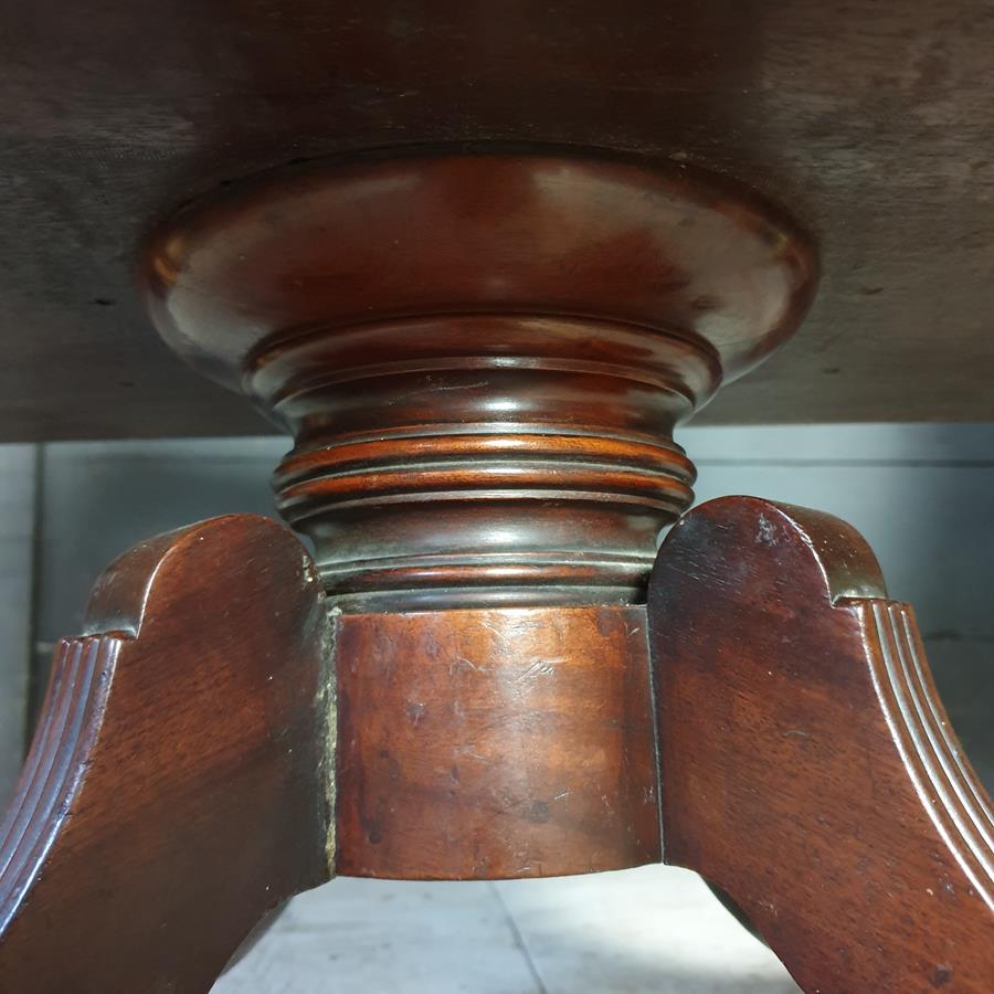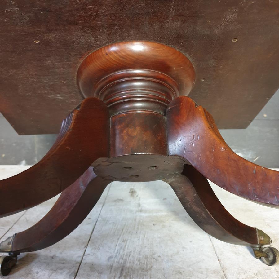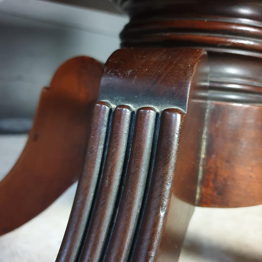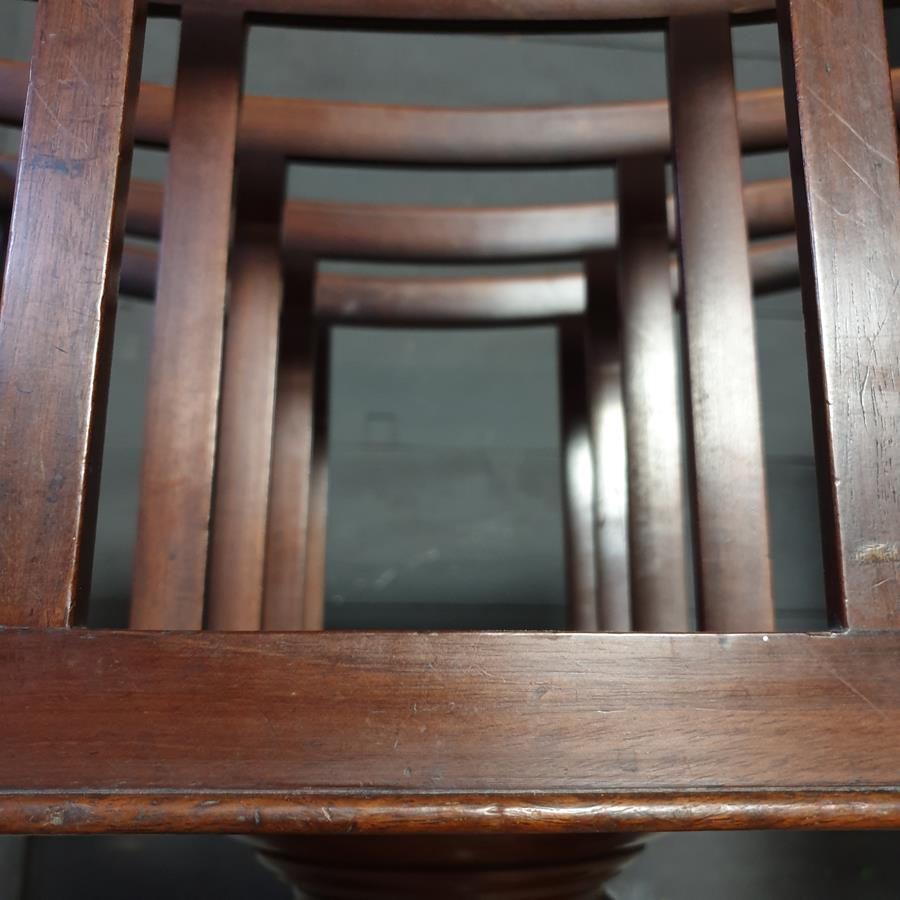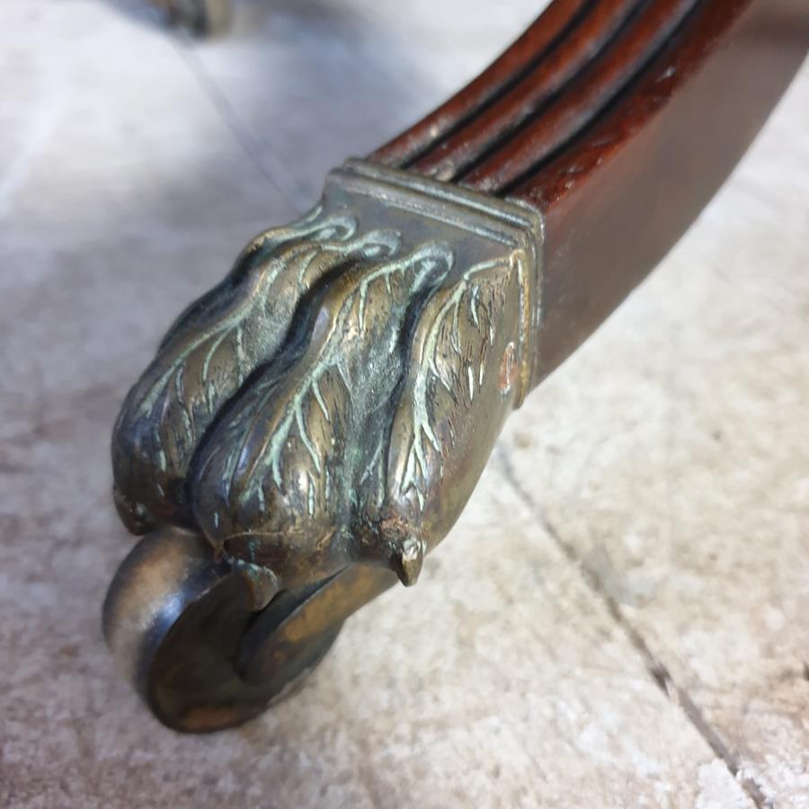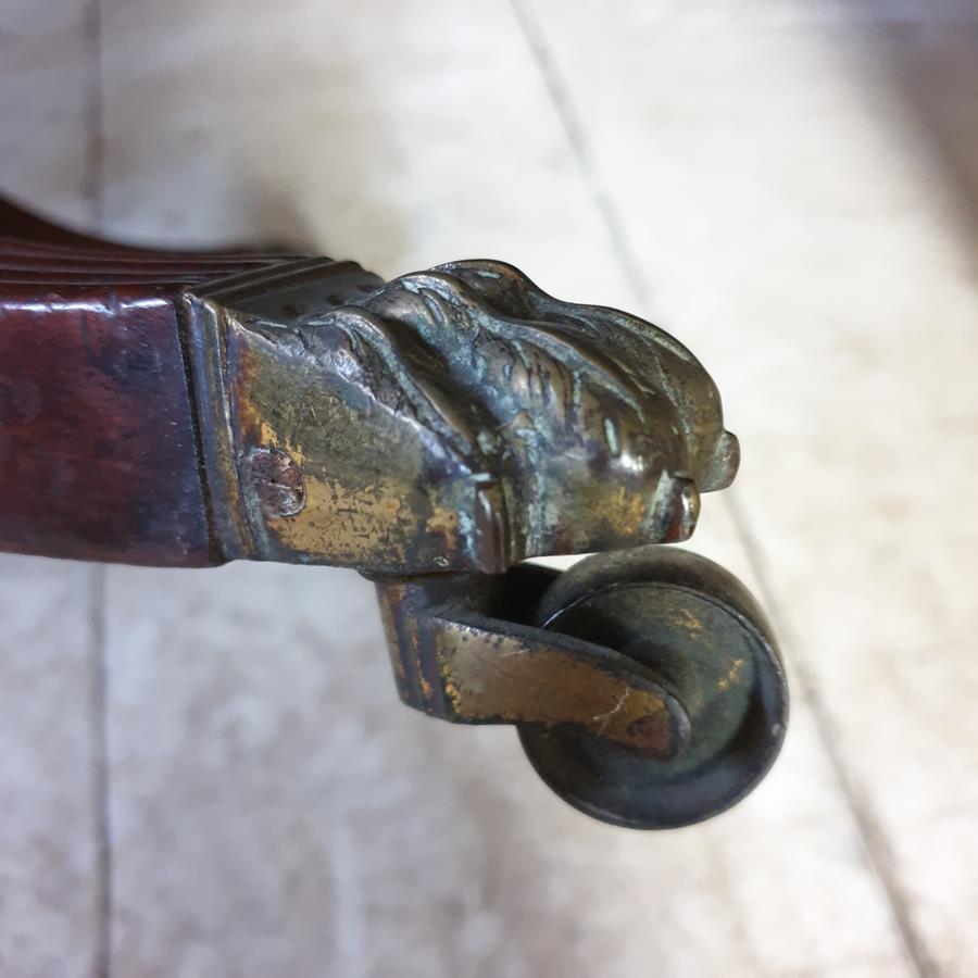 A mid 19th Century, mahogany four division Canterbury. The base has a turned support, with four reeded out swept legs, terminating with the original brass claw castors.