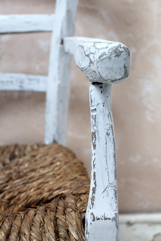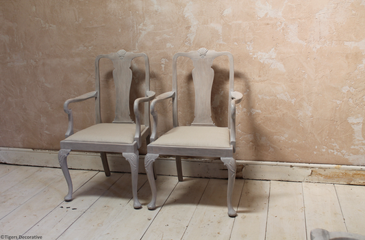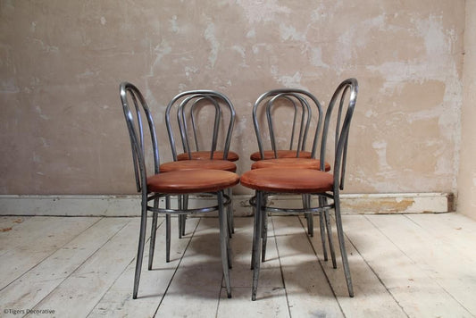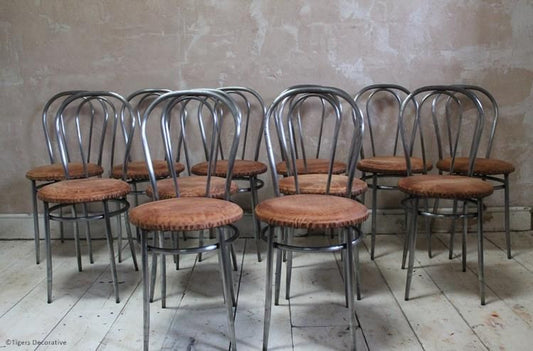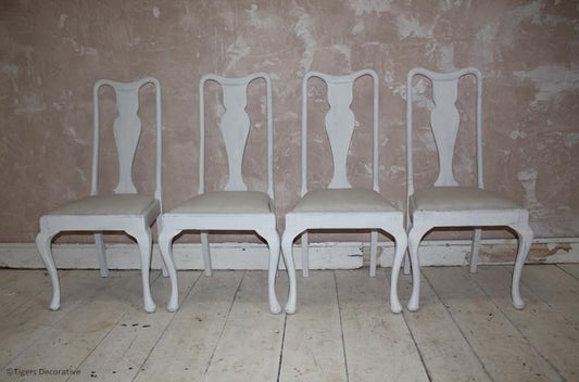 Set Of Six Mid 20th Century Painted Dining Chairs With Linen Seats