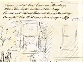 A 19th century pen and ink on paper study, of a doctors visit. Circa 1880.